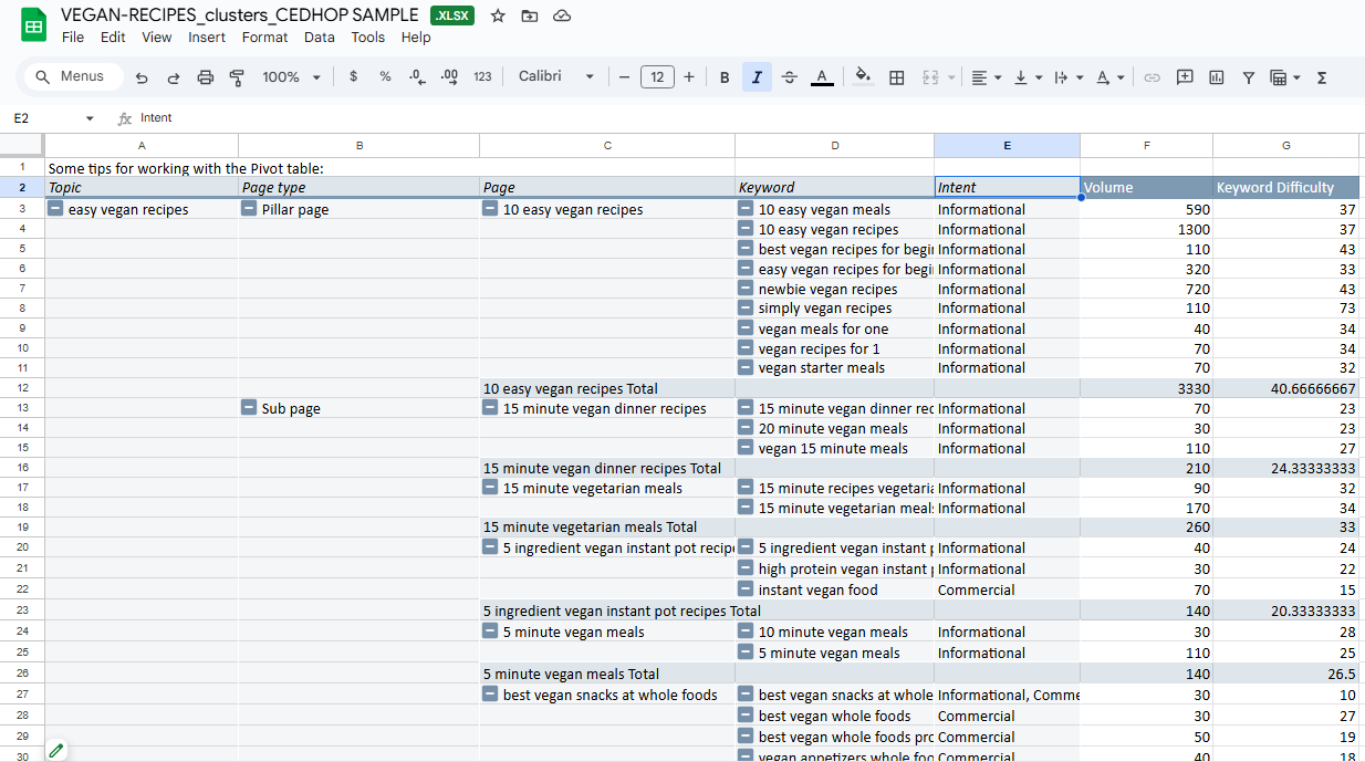 Niche-Specific Keyword Clusters (Keyword Strategy Excel) : Proprietary list of high-intent recipe keywords to target for rapid ranking (based on search intent—Informational, Commercial, etc.).